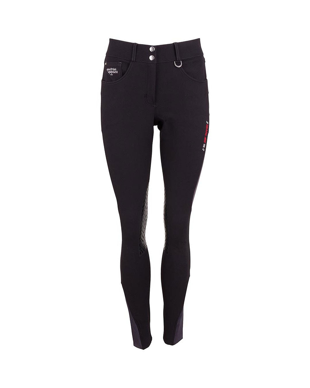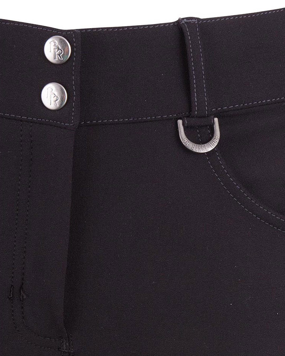 Elevate your ride with the BR Madelyn Knee Patch Breeches. Designed for ladies, these close-fit breeches feature a silicone grip print at the knees for a stable seat. The wide stretch waistband with double button closure and belt loops add a touch of sophistication. With elastic and lower leg inserts, these breeches provide both style and comfort. Made with a blend of micropolyester, cotton, and elastane for optimal performance.
