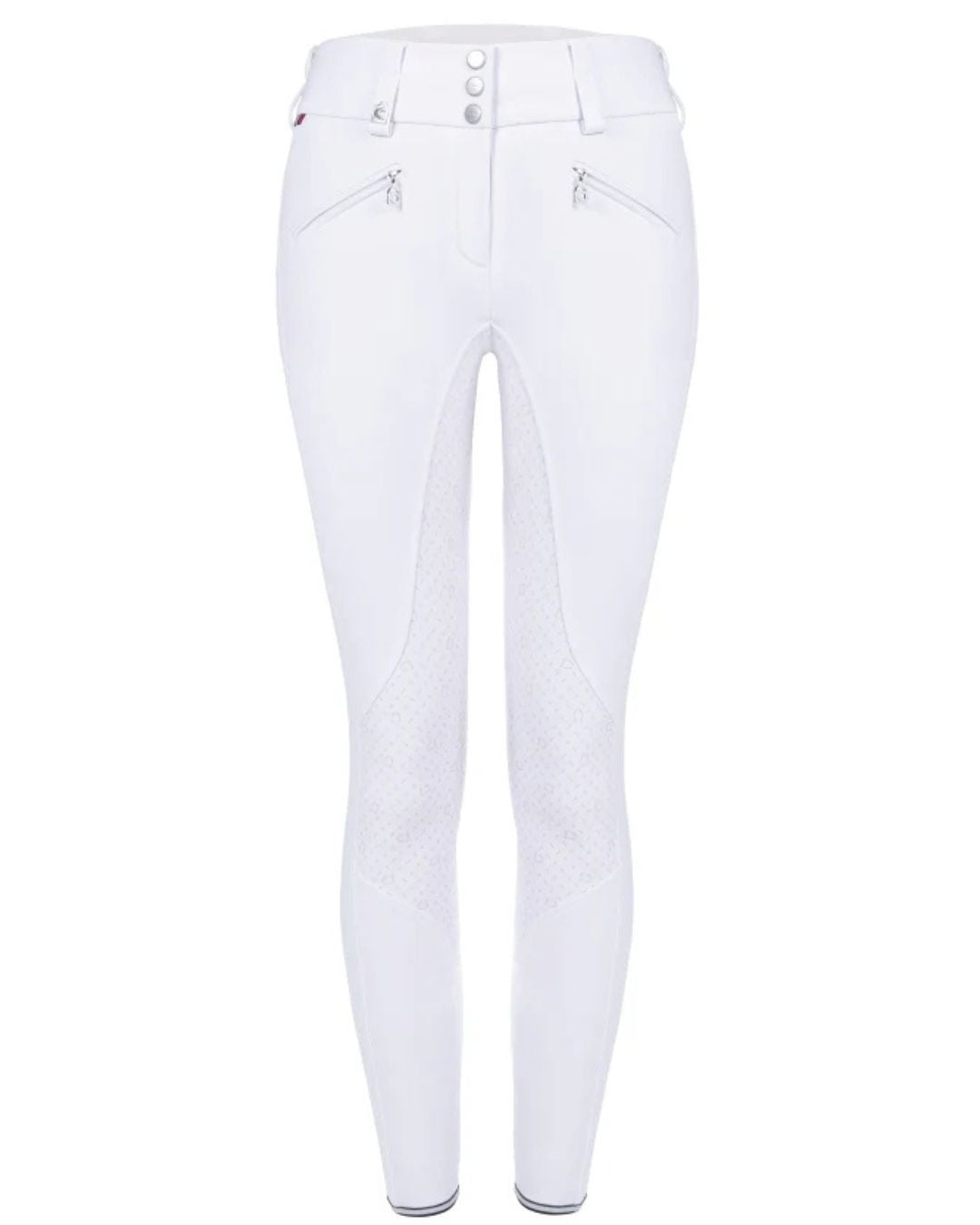 Full seat grip, Stretch Premium sporty breeches with high waist and special cut in the knee area. CAVA TEC GRIP PU full seat. Equipped with two practical zipped front pockets. Insert at side for more wearing comfort. Competition conform, no logo on the left thigh