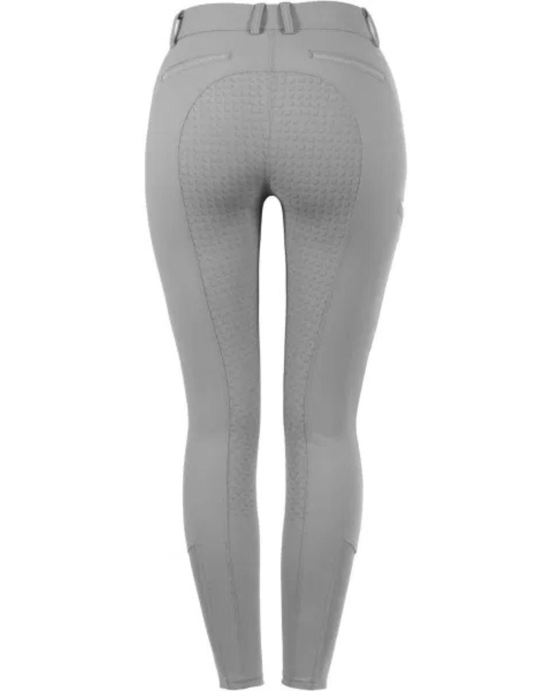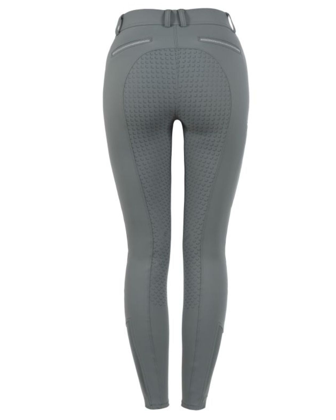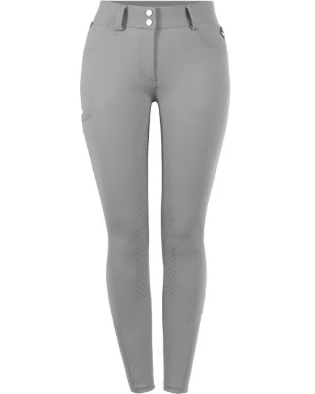 These elegant breeches are crafted from a comfortable outer fabric and feature refined tonal pipings on the belt loops. Stylish imitation welt pockets adorned with sparkling silver-look nailheads add a touch of glamour, while a small coin pocket sits neatly below the waistband on the right. A practical mobile phone pocket on the right thigh combines function with fashion, complemented by high-quality silver-look nailhead artwork on the left thigh and a premium Cavallo patch above the left pocket.