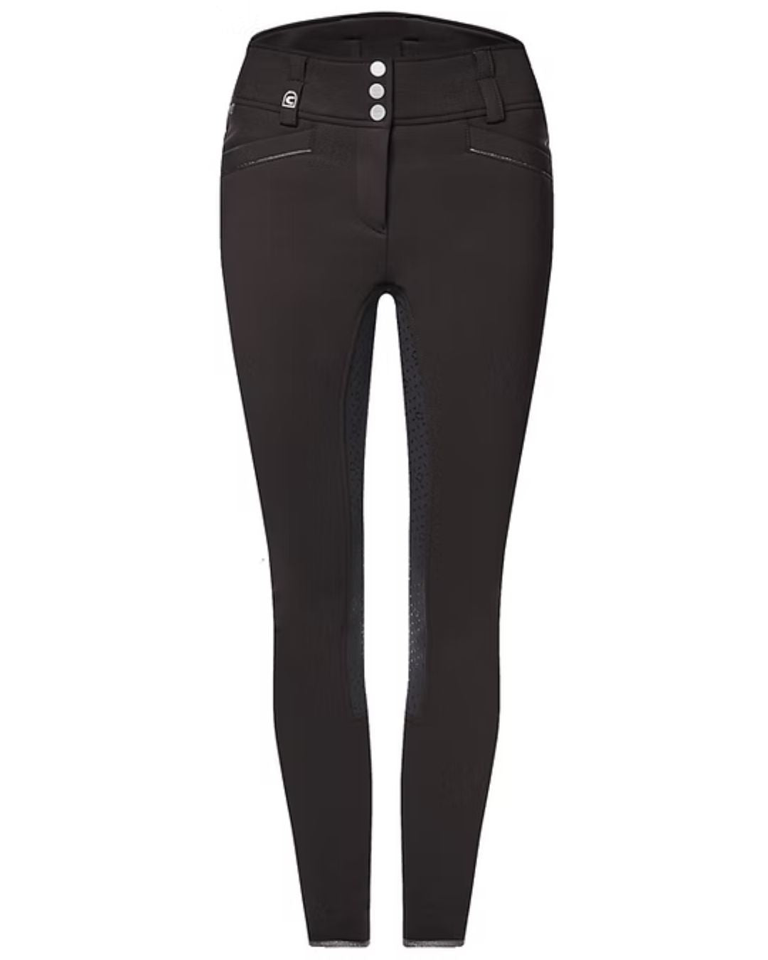 The Cia Grip Softshell winter riding breeches from Cavallo are a stylish and functional choice for riders who do not want to compromise on comfort and freedom of movement during the cold season. These pants feature a high waistband that provides additional support while creating an appealing silhouette. The 4-way stretch ensures optimal mobility in the saddle, while the breathable and quick-drying properties offer a pleasant wearing experience. The water-repellent and thermal insulating material makes the Cia Grip S the ideal companion for cold and wet days. With two practical side pockets and an elegant design, these riding breeches are both functional and fashionable.