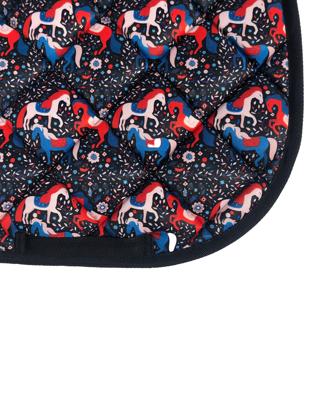 Indulge in the luxury of the Dreamer's & Schemer's All Purpose Saddle Pad. With girth straps that won't bunch or pinch, and a fabric that keeps your horse cool, this pad is a dream come true. Plus, the whimsical patterns will bring a smile to your face, even after your coach's endless circles.