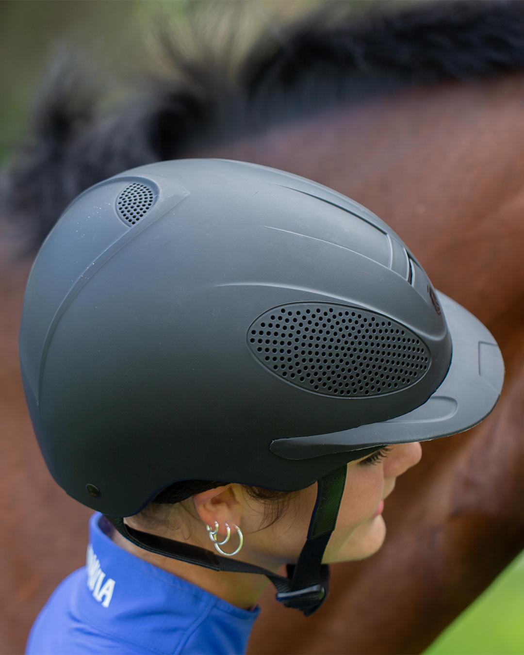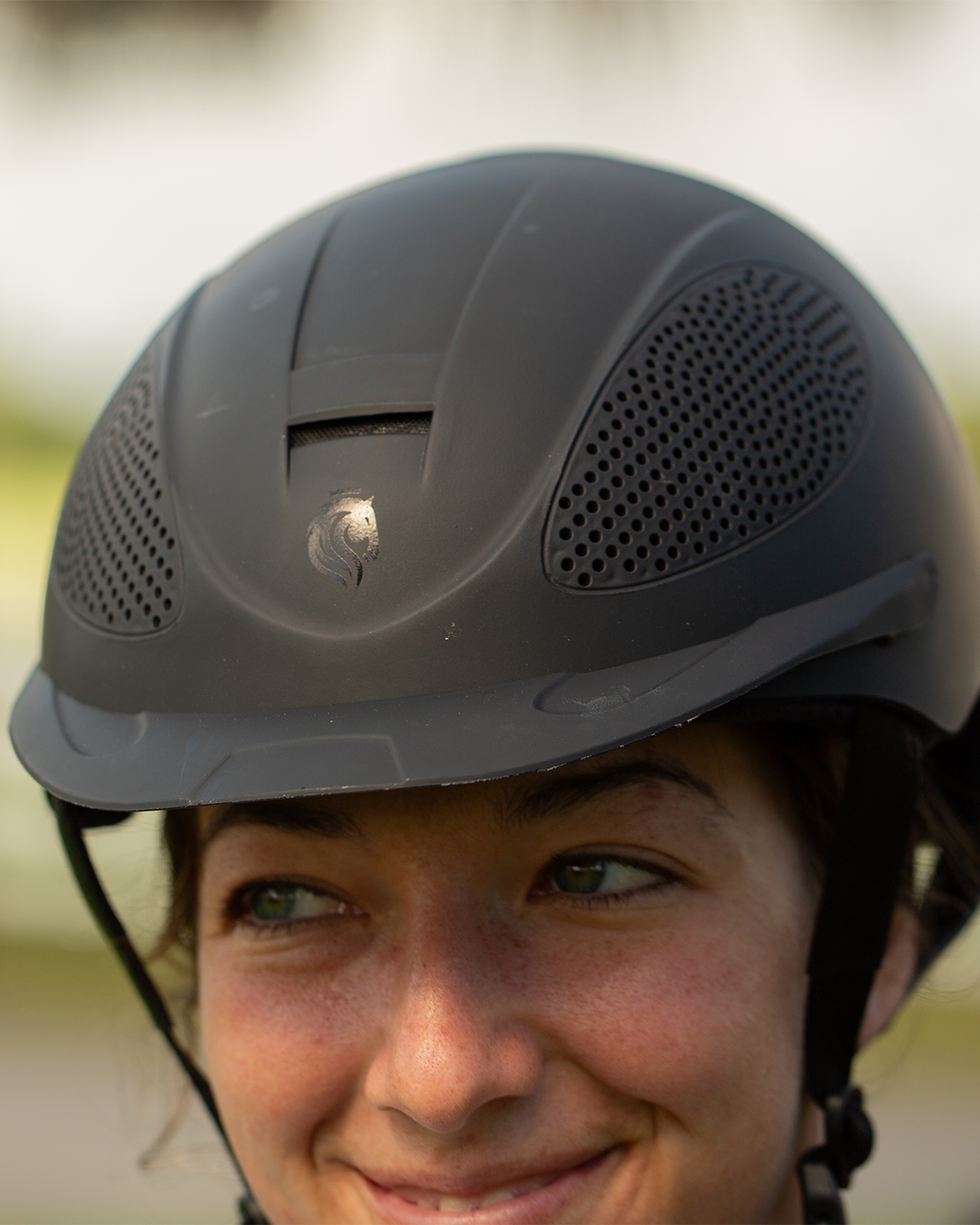 Introducing the Equinavia Skylar Helmet, a sophisticated, lightweight, and sporty option suitable for schooling. This helmet features airflow vents, keeping you cool during long rides, and the removable Coolmax® liner provides comfort and easy cleaning. It's easy-adjust dial ensures a perfect fit, while the secure YKK adjuster clip and buckle offer convenience and safety. The removable breakaway peak adds an extra layer of protection.The ponytail cut-out adds to its comfort, making it the ideal choice for riders of all levels.