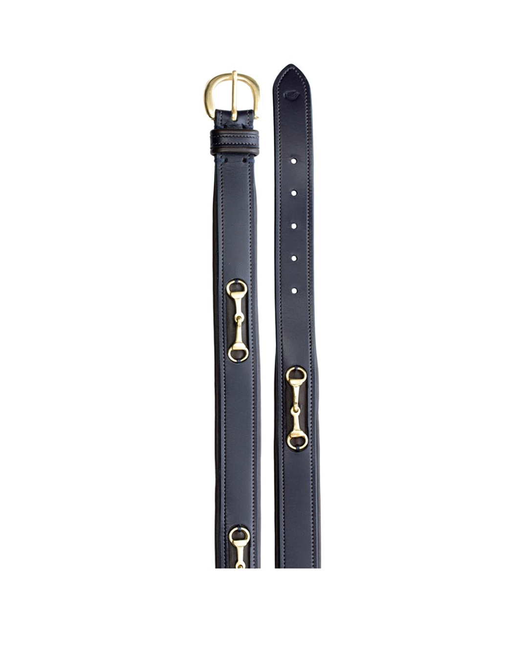 Indulge in elegance and showcase your passion for horses with the Equinavia Tirild Bit Belt. Crafted with soft leather padding and a full grain overlay, this classic belt boasts beautifully inlaid snaffle bits. Its horseshoe-shaped buckle adds a charming touch to the equestrian-inspired design. With a width of 1 1/8 inches and five adjustable holes, it offers a comfortable and customized fit. Available in black with a nickel-plated buckle, or Hunter Green and Navy Blue with a brass-plated buckle.