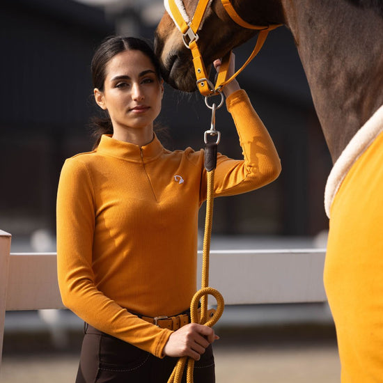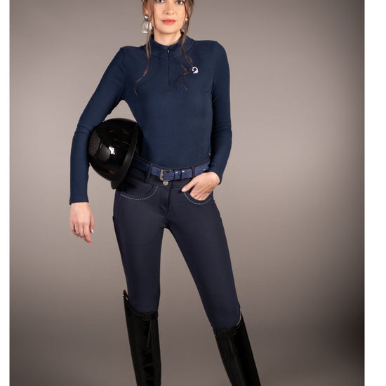 Lauria Garelli Arezzo LS Shirt - a base layer for equestrians offering the perfect blend of sporty functionality and stylish design. The breathable fabric reliably regulates temperature and moisture, ensuring a pleasantly dry feeling throughout the day – whether during activity or casual wear. The stretchy, ribbed material moves with you effortlessly while maintaining its shape, so the shirt keeps its tailored look even after frequent use.