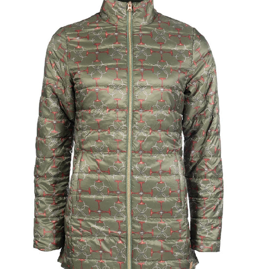 This stylish, lightly padded riding coat is perfect for in between seasons. Thanks to the zippers on the side and a two-way front zip, it's ideal for riding in. The fun all over pattern ensures an equestrian look, whilst the rose gold zippers add a touch of sophistication.