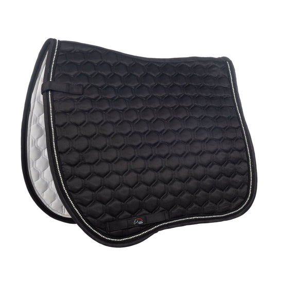 Indulge in luxury with the HKM Elisa Dressage Pad. Combining breathability and comfort, this saddle pad features touch close fastenings and an anatomically formed design. The fashionable quilting and attached rhinestone band add a touch of sophistication to your ride.