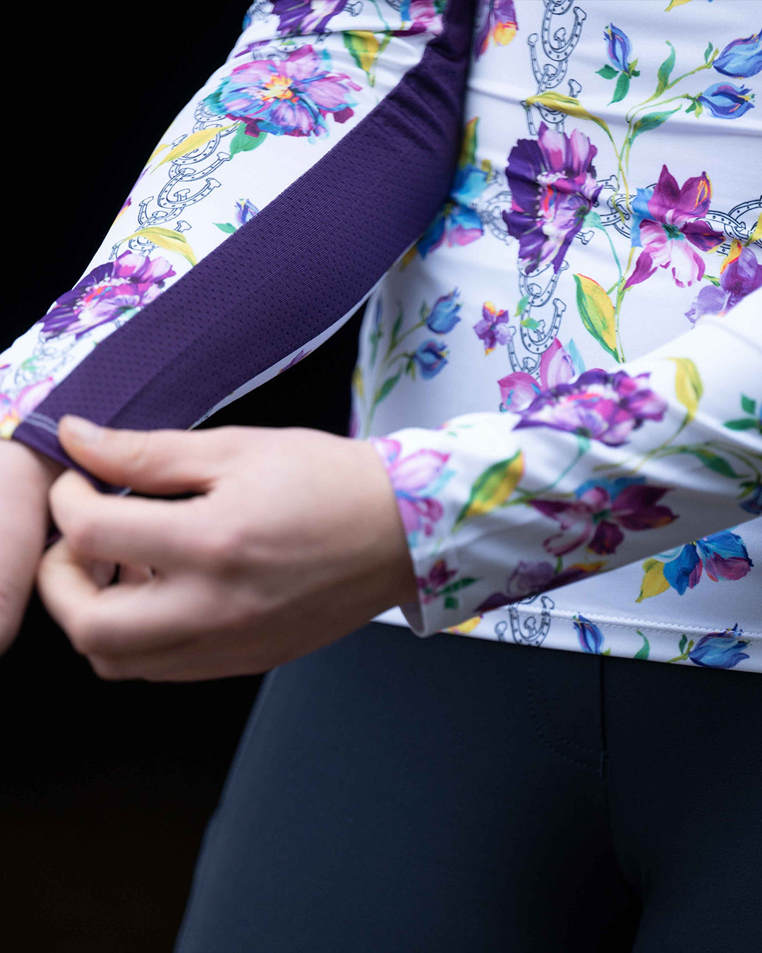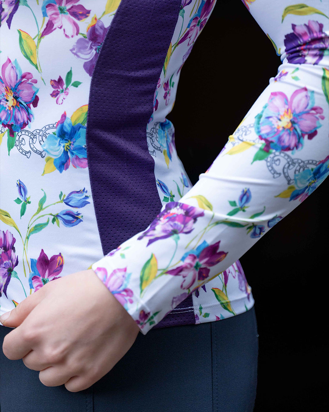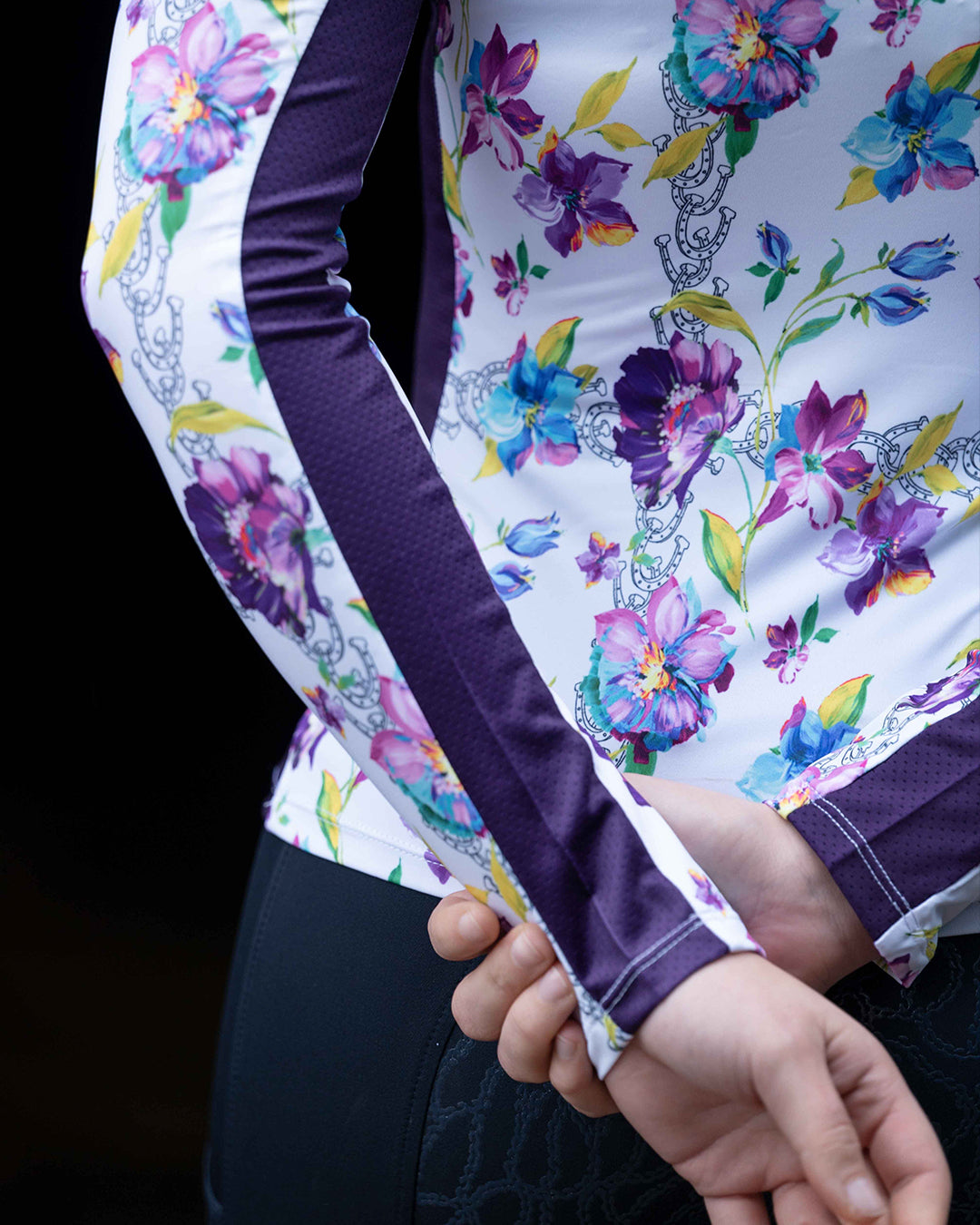 Okay, this is probably our favourite shirt to come in for summer. This STUNNING equestrian ventilated functional shirt has not only mesh inserts to keep you cool but the most gorgeous pattern for spring/summer riding. Pair this shirt with breeches of all colours and be the envy of everyone at your barn. It is a super flattering shirt ready to be shown off at home or away! Don't ride? Wear this shirt to play tennis, shop, golf, the options are endless!