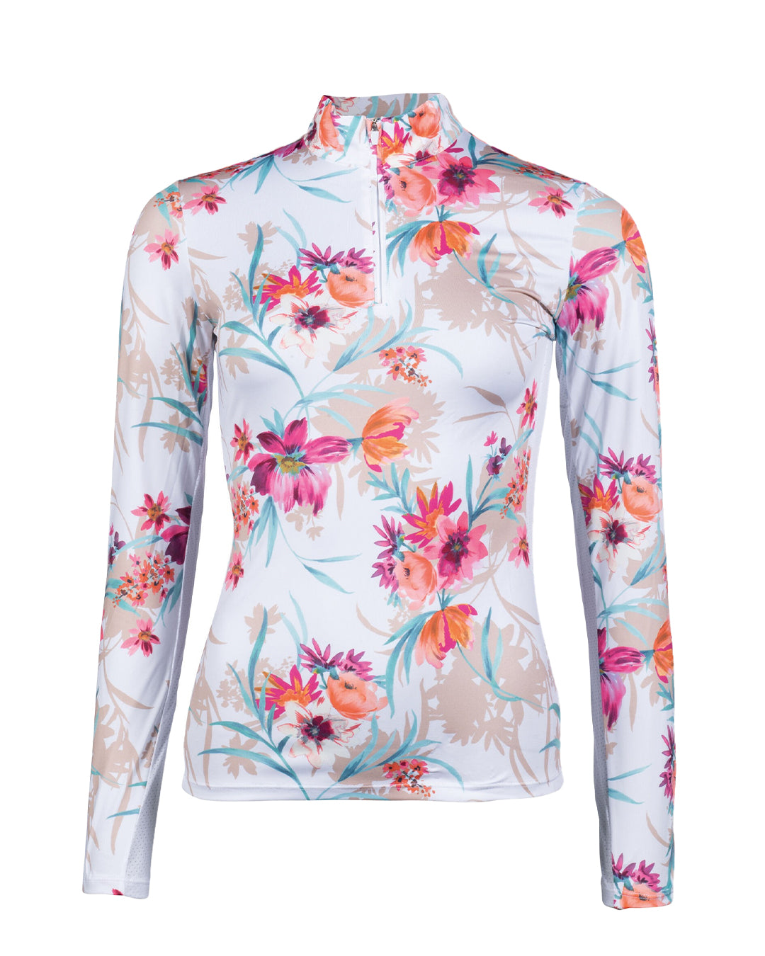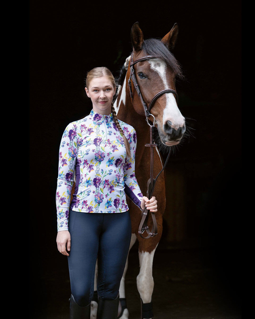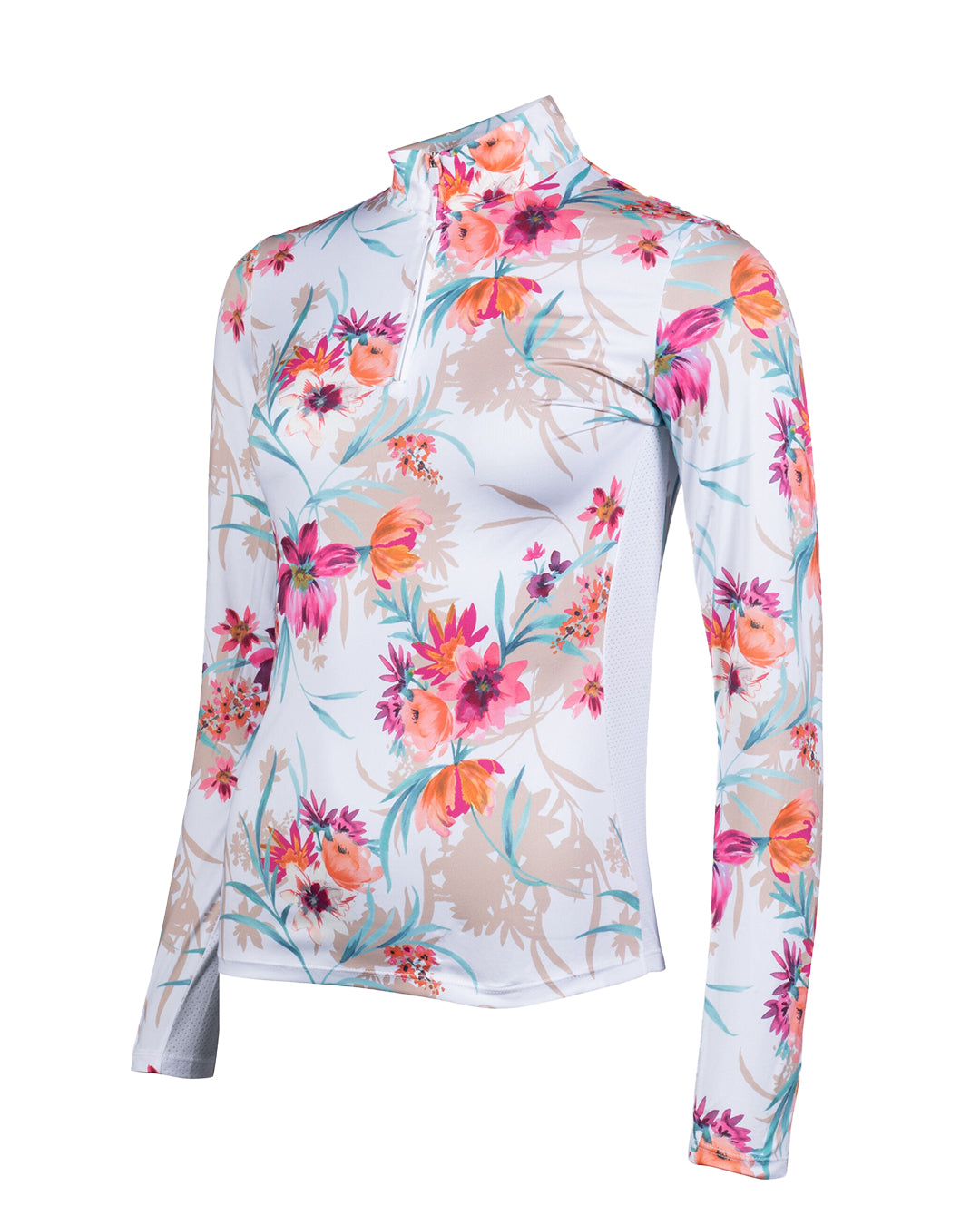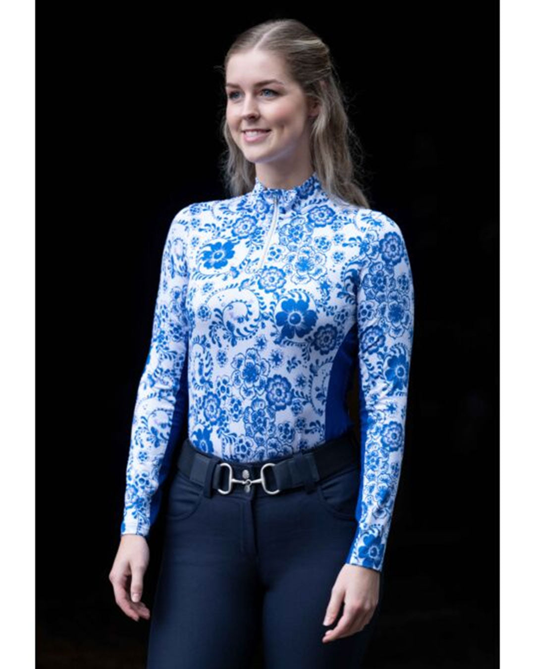 Okay, this is probably our favourite shirt to come in for summer. This STUNNING equestrian ventilated functional shirt has not only mesh inserts to keep you cool but the most gorgeous pattern for spring/summer riding. Pair this shirt with breeches of all colours and be the envy of everyone at your barn. It is a super flattering shirt ready to be shown off at home or away! Don't ride? Wear this shirt to play tennis, shop, golf, the options are endless!