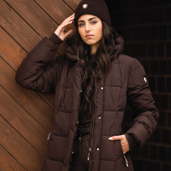 Get ready to ride in style with the HKM Livigno Quilted Coat. With its warm cotton wool filling and fashionable quilting, this coat will keep you warm and looking great. The hood attached on the inside provides extra protection while the two-way zip and riding slits ensure comfort. Stand out with elaborate details, high-quality metallic applications, and a trendy inner waistcoat.