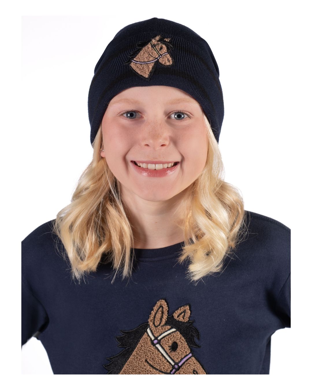 This Super warm and cozy beanie has a soft fleece lining that’s perfect for chilly days. The cute horse head applique adds a playful touch, and the stretchy fabric makes it comfy and easy to move around in.