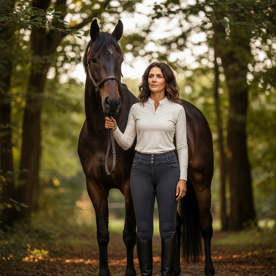 The HKM Velluto Denim Breech is the jean breech you have been looking for. These are high waisted, slim fitting breeches that keep you looking amazing in and out of the saddle.