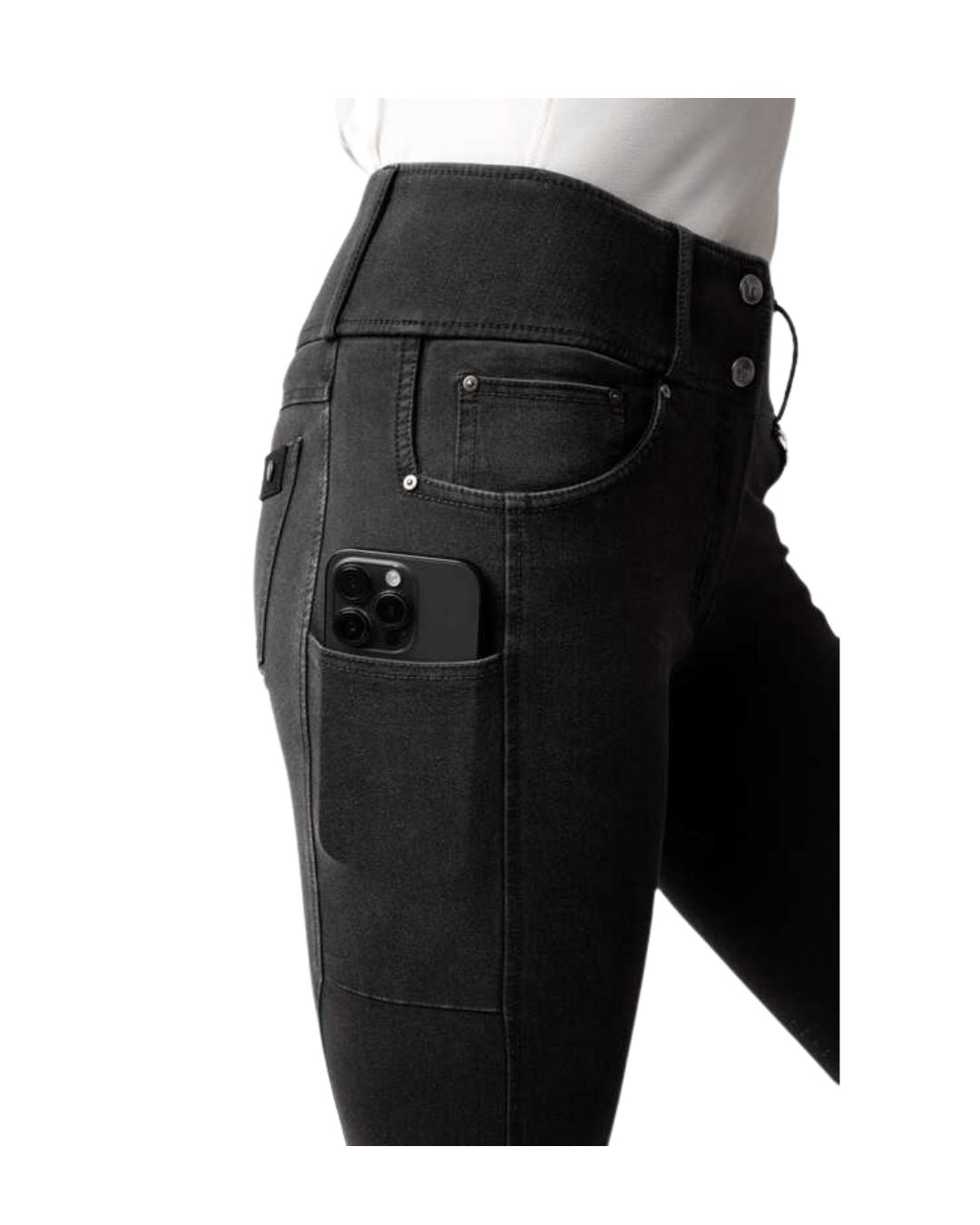 These denim full grip breeches combine style, comfort, and performance. The 4-way stretch denim fabric ensures maximum flexibility and a perfect fit. A mobile pocket on the thigh and back pockets add practicality. The hybrid grip offers excellent stability in the saddle. Featuring belt loops for a classic look. Breathable and easy to care for – ideal for everyday riding.