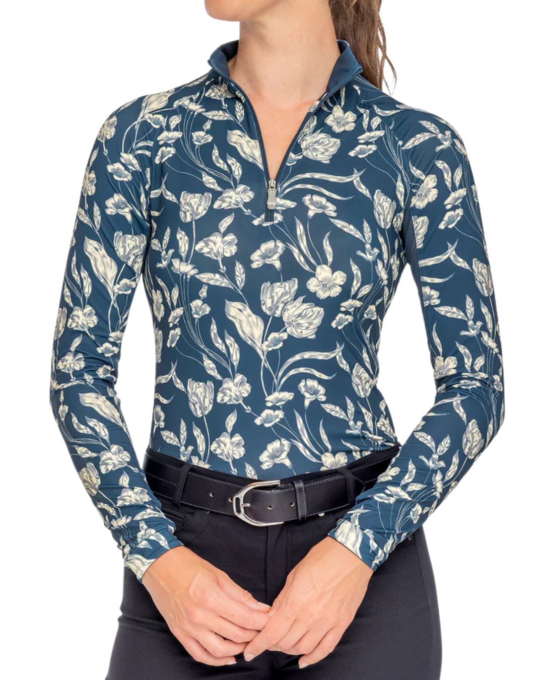 This season’s rich sailor blue French tulip print features a modern take on an art nouveau classic. Long sleeves, ¼ zip, UPF 30, breathable power mesh and soft 4-way stretch fabric in a contemporary fit