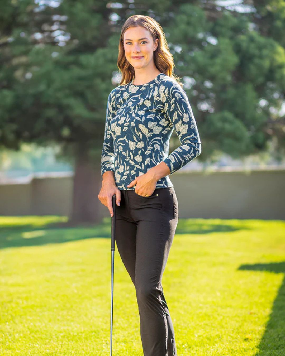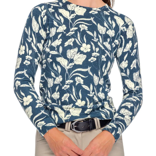 The Kastel Blue Tulip Sweater brings together comfort and style in a playful, extra-soft knit that feels as good as it looks. This sweater features a signature rich sailor blue adorned with a whimsical French tulip print, adding a splash of charm to your equestrian wardrobe. Perfectly designed to complement your favorite breeches, active pants, or leggings, it’s your go-to piece for effortless, colorful layering whether you're in the saddle or out on the town. Embrace both function and fun with this standout sweater that brightens your outfit and mood alike!