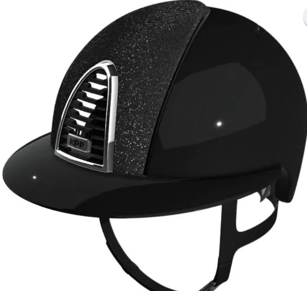 KEP Cromo 2.0 Shine Glitter Polo Visor Helmet is highly protective, lightweight, and comfortable. Riders will appreciate the KEP Air Control System with additional ventilation slits in back and an adjustable vent in front. The new eco-green padded removable liner is softer and more breathable than ever. An exclusive KEP design leather harness has 5 attachment points for stability and security. KEP Cromo 2.0 Shine Star Helmet with impact-resistant polycarbonate outer shell offers state-of-the-art technology, safety, and luxury look and feel. KEP suggests riders wear a medical ID bracelet with the message "Hold smartphone up to helmet for medical information" to alert emergency personnel.