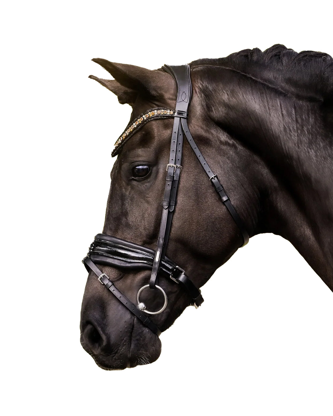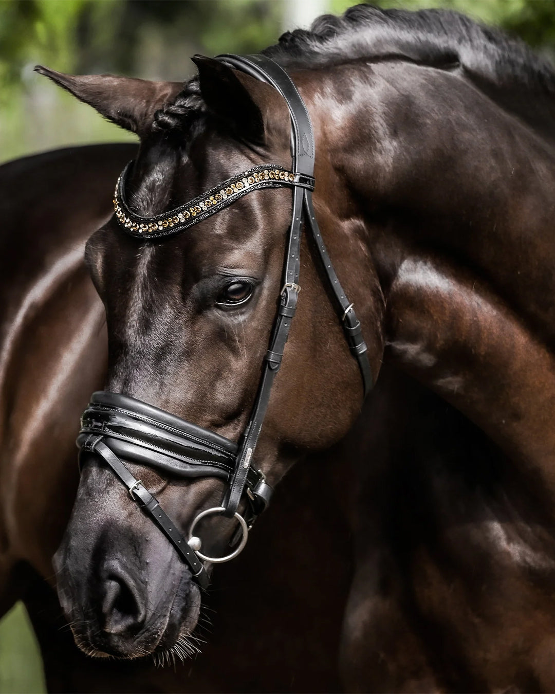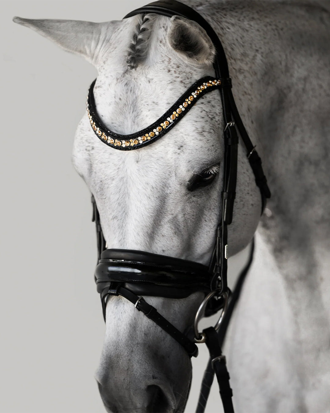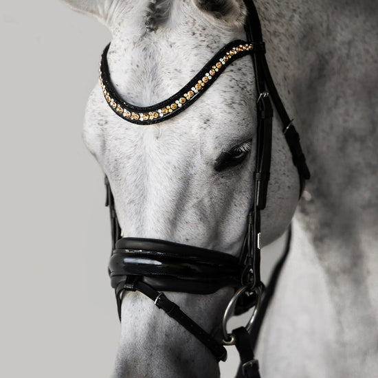 - Wide crystal browband in gold / champagne tones