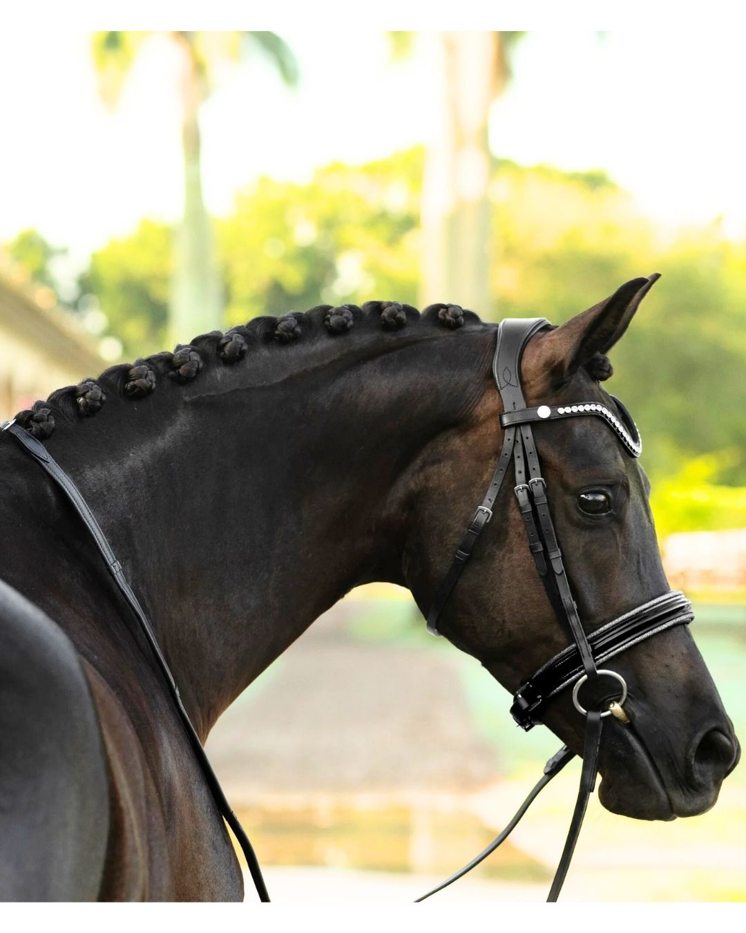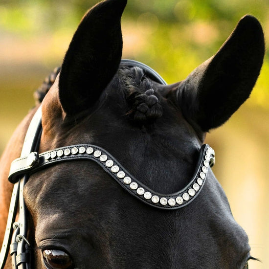 - Browband with stylish satin finish button