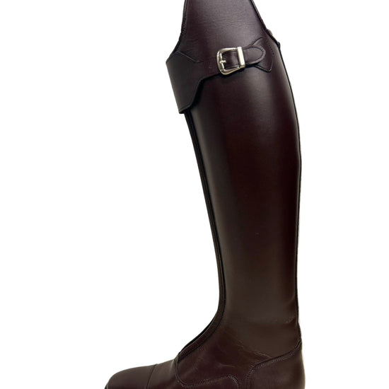 Gorgeous leather polo style dressage boot. Outer sculpt of 7cm, zipper in the front. Classic fit. The leather inner-sole and comfort foot bed are perfect for long days riding at home or showing.