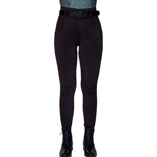Indulge in luxury and style with QHP Avelie Full Grip Riding Tights. Made with super elastic materials, these tights offer unparalleled comfort and durability. With resistance to shrinking, stretching, abrasion, and mold, they are truly built to last. Plus, stay connected on the go with two convenient pockets for your phone. Complete your winter look with the rest of our exclusive collection.