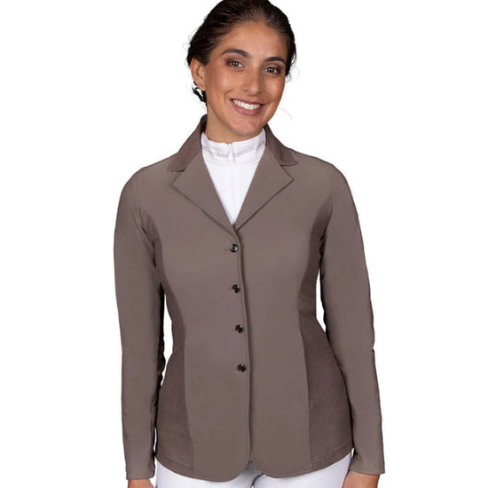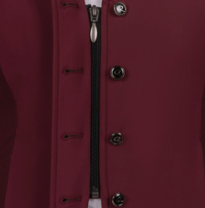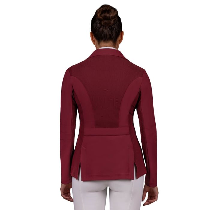 A sporty competition jacket featuring breathable mesh panels on the sides, under the sleeves, across the back, and along the collar. The mesh design enhances airflow, making it an ideal choice for summer. The jacket also includes a discreet zipper behind the button closure and two hidden zippered pockets at the front for added convenience