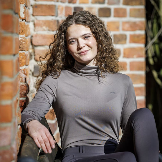 The SPAnne women's training shirt combines timeless elegance with sparkling details. Featuring full-length sleeves and a classic turtleneck, it offers a sleek and sophisticated silhouette. Delicate rhinestones along the outer edge of the collar add a subtle shimmer, while rhinestone logo motifs on the chest, sleeve, and back enhance the stylish look – ideal for fashion-forward riders who appreciate refined design elements.
