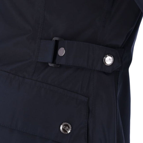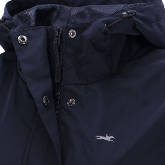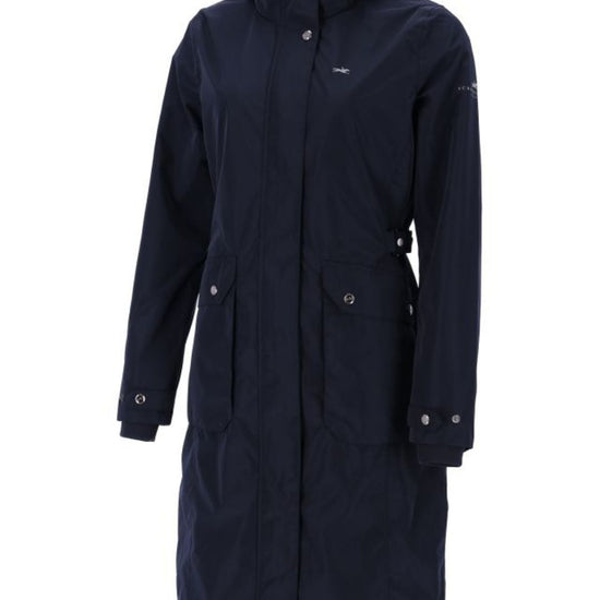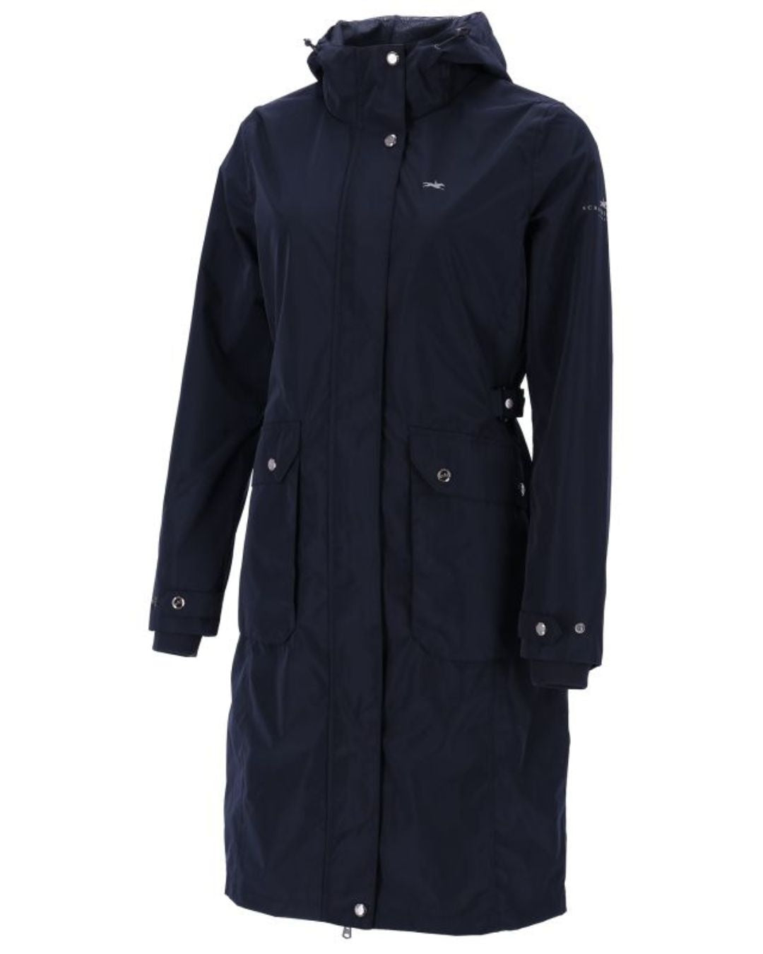 Introducing the SPKarla Rain Coat – your perfect companion for rainy days! This functional raincoat keeps you dry in any downpour with its waterproof coating (5000 mm water column) and taped seams. Offering 5000 g/m²/24 hours breathability, it ensures comfort even on wet and humid days. The adjustable waist with side straps and press studs allows for a customized fit, while the large patch pockets with flaps provide both style and practicality. A concealed 2-way zip at the center front shields you from the elements, and the long back zip with an insert offers extra mobility. With an adjustable sleeve hem and jersey cuff, the coat is designed for a perfect fit. Reflective logos on the chest, sleeves, and hood not only add a sporty touch but also enhance visibility in low light conditions.