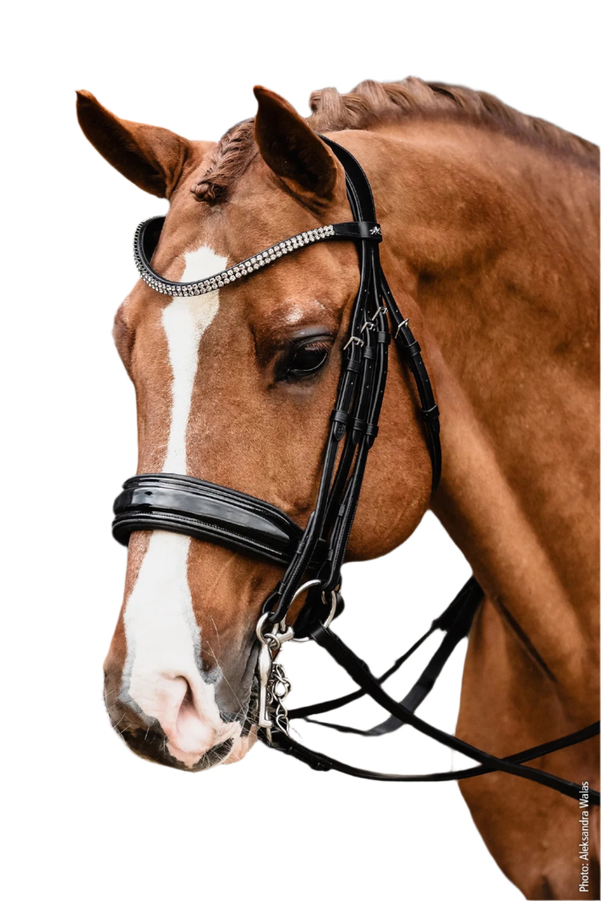 This dressage bridle perfectly blends exquisite design with well-thought-out functionality, making it the ideal choice for riders who value quality and style.