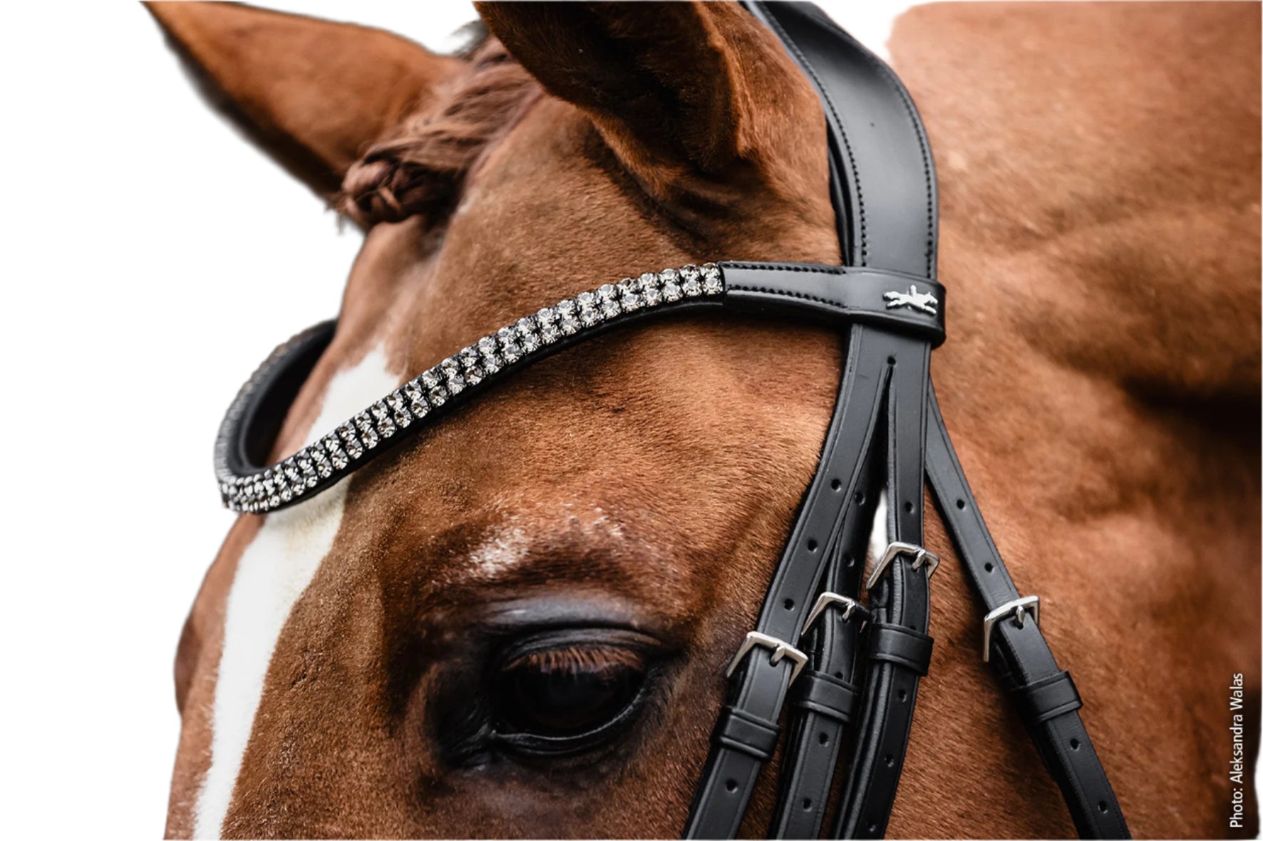 - slim browband with two rows of angular crystals