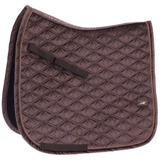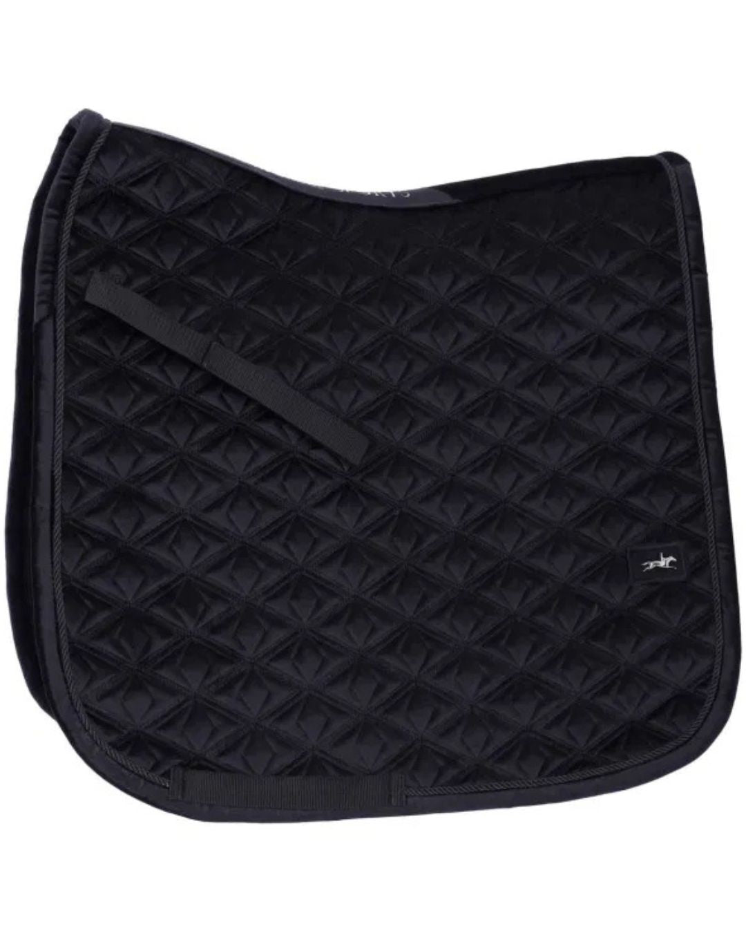 A subtle cord trim adds a refined accent, and a premium metal horse logo on the left side highlights its sophisticated look. Designed to maintain its shape for an optimal fit on the horse, this pad is made from breathable materials to provide a comfortable, balanced climate during every ride.